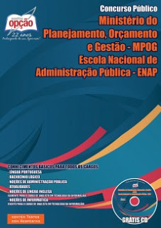 O Ministério do Planejamento, Orçamento e Gestão, e a Escola Nacional de Administração Pública, publicaram o edital do concurso que oferece o total de 556 vagas em cargos de nível superior divididos nos dois órgãos e distribuídas nas cinco regiões do Brasil. instituição responsável pelo certame é o CESPE/UnB (Centro de Seleção e de Promoção de Eventos da Universidade de Brasília).