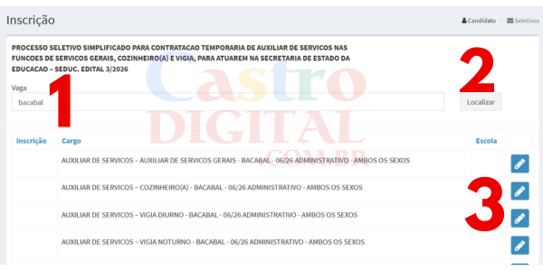 - Leia, escolha a função que deseja se inscrever e clique no lapís do lado direito da tela para proseguir com a inscrição.